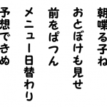 「お面綿菓子 遊ぶや踊る」では、「お面」「綿菓子」「遊ぶ」「踊る」と祭りのあるあるを列挙しました。もちろん「お面」と「綿菓子」は直前の「出店並び居」を受けて。人気キャラクターのお面は定番の光景でしょう。大きくてフワフワの綿菓子には特別感があり、買ってもらうのが楽しみでした。