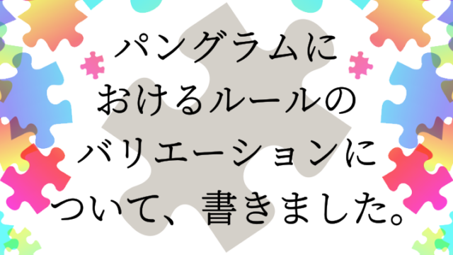 ということで、このことば遊びの呼び方について、当サイトでは基本的に「かなパズル」を使いますが、日本語によるパングラムとは完全パングラムのことを指すのだとしっかり確認したうえで、通り名としての「パングラム」も併用していきたいと思います。